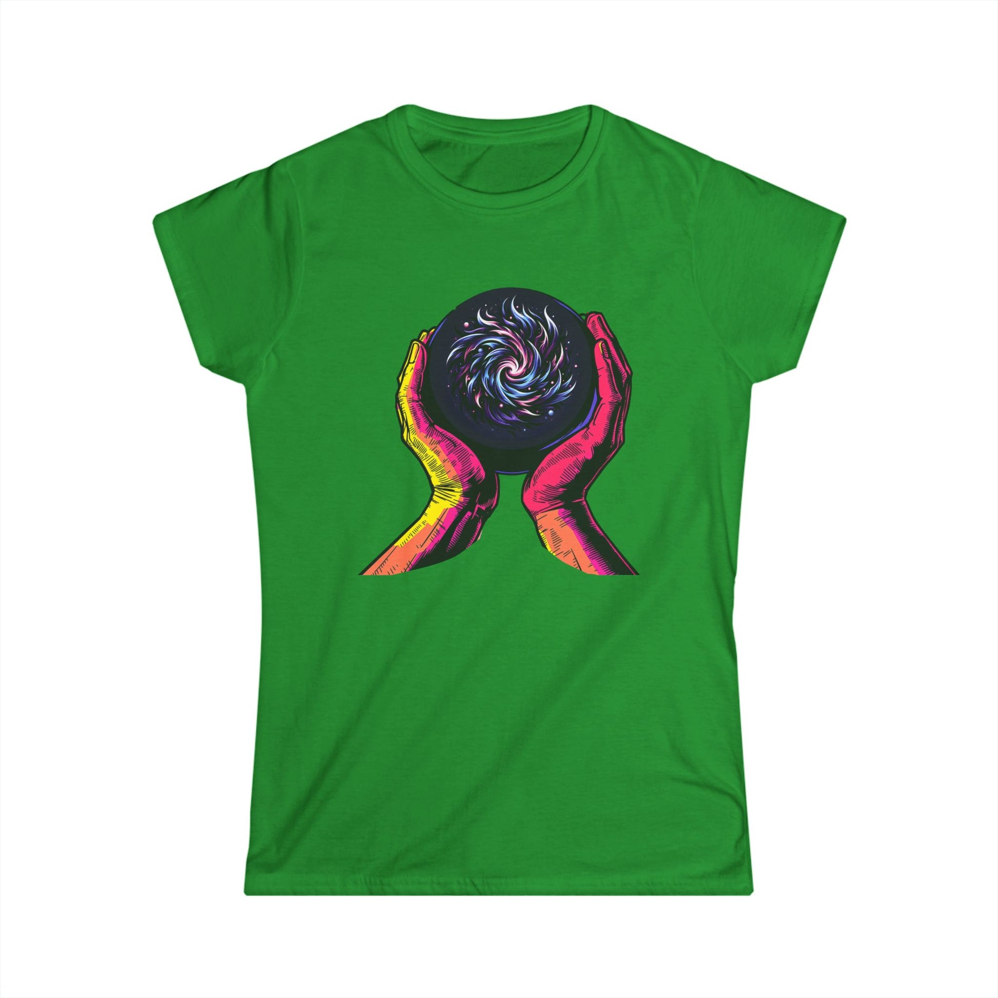 Cosmic Energy Witchy T-Shirt | Neon Galaxy in Hands Tee | Mystical Aesthetic Shirt