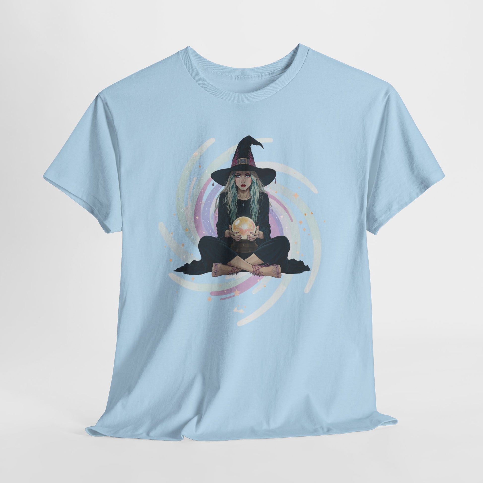 Step into the mystical realm with this Witch Crystal Ball T-Shirt, featuring a powerful witch in her iconic hat, holding a glowing crystal ball as a swirling star vortex spirals behind her. Perfect for anyone who loves witchcore fashion, celestial aesthetics, divination, tarot energy, and magical symbolism. This tee blends cosmic vibes with enchanting witchy art—ideal for Halloween, everyday witch style, spiritual practices, or gifting to your favorite mystic. Soft, comfy, and designed to elevate your magical wardrobe.