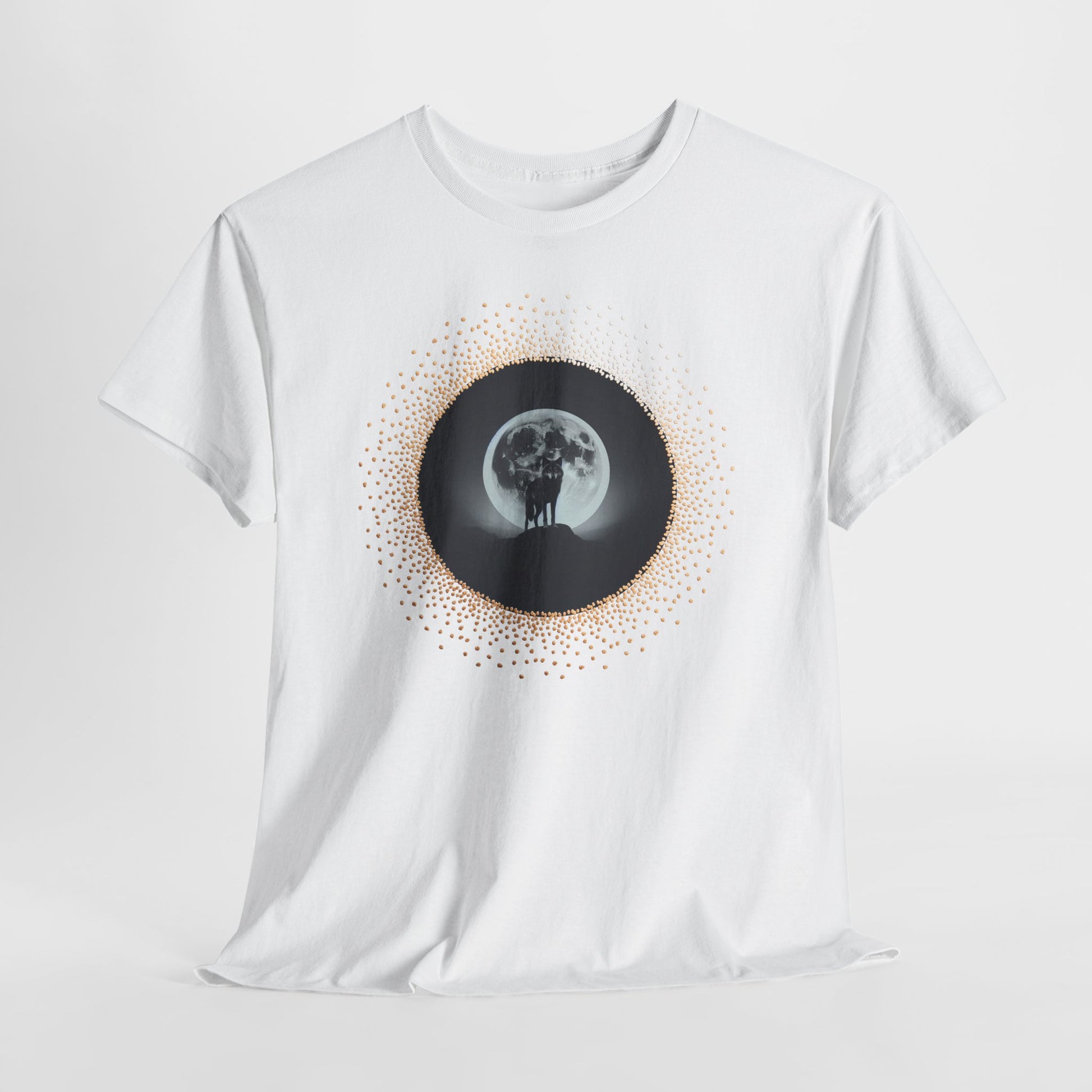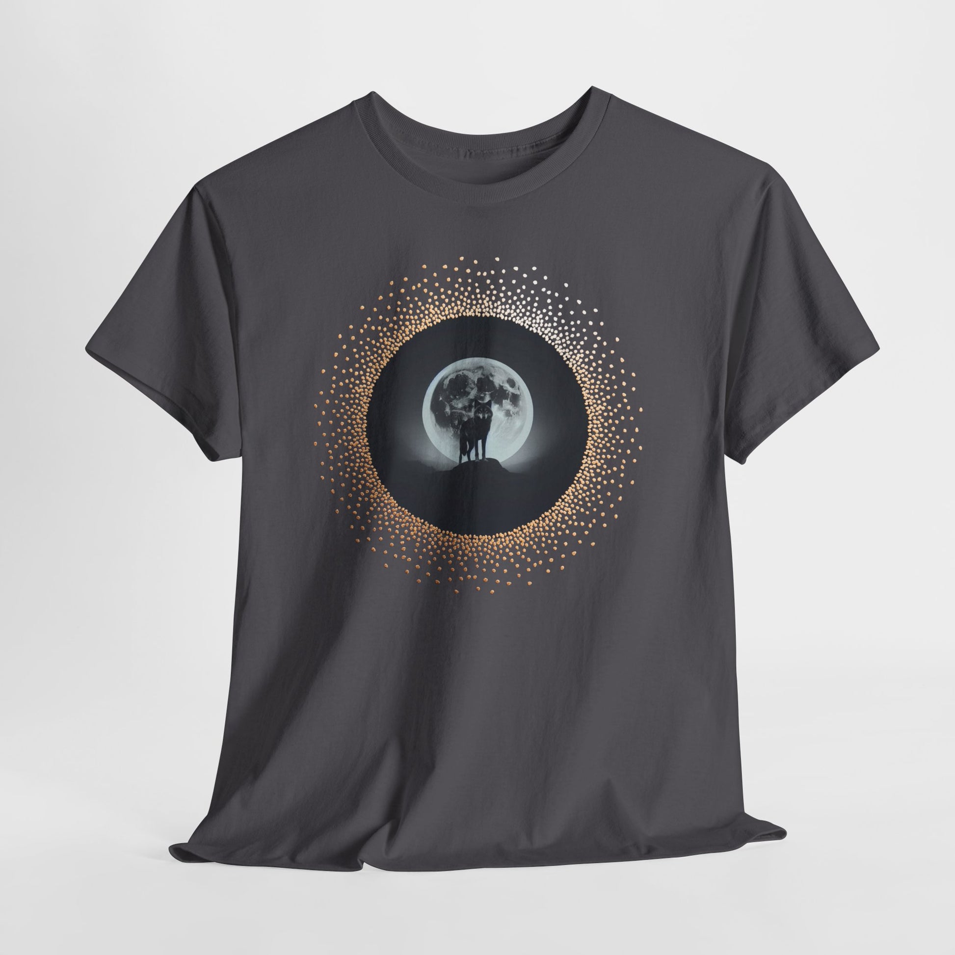 - DTG/DTF printed artwork for crisp, detailed moon-and-wolf design